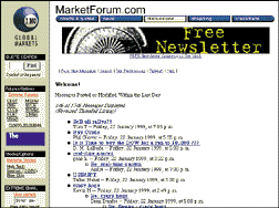 The message board display can be organized in a variety of different ways, and the toolbar for QuoteWatch, which is the quote service operated by INO Global Markets, can travel with the MarketForum visitor as he or she browses messages, news, shopping, and classified ads.