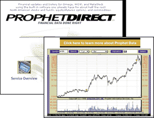 The ProphetDirect service allows users of popular charting programs such as SuperCharts, MetaStock, TradeStation, OptionStation, Window on WallStreet or Wall Street Analyst to use their software's built-in downloader to retrieve historical information from ProphetDirect.