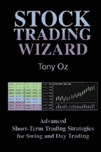 Stock Trading Wizard: Advanced Short-Term Trading Strategies For Swing And Day Trading (179 pages, $96 hardcover, 1999, ISBN 0967386209), by Tony Oz, published by Tony Oz Publications. This book discloses the author's short-term trading strategies in a simple yet comprehensive manner. The book covers the essential elements for short-term trading. It was designed by the author for everyone who is serious about trading stocks for a living. Among other things, the book covers technical analysis, Level II quotes, advanced order execution systems, market psychology, psychology of trading, secrets to successful trading, money management, stock screening formulas, and much more. The author did not stint on paper and included numerous charts and tables in his attempt to paint a clear stock trading system.