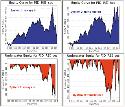 Giorgos Siligardos’ article in the July 2009 Stocks & Commodities, “The Pivot Detector Oscillator, Simplified,” describes a technique for entry and exit of long positions using two pairs of Rsi values. One Rsi pair is used when price is above the 200-day moving average and another when it is below that average.