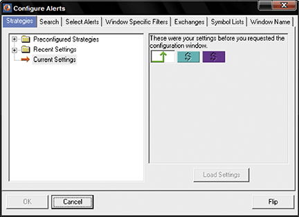 Figure 16: TRADE-IDEAS, ALERTS CONFIGURATION. The combination of alerts and filters used to create Sylvain Vervoort’s modified ATR volatility stop strategy are shown here.
