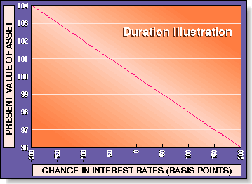 The duration statistic has proved to be a valuable risk indicator for fixed-income portfolios. Duration gives an indication of how sensitive a portfolio is to changes in interest rates. A bond portfolio with a five-year duration would be expected to lose 5% of its value if interest rates rise by one percentage point, or gain 5% if interest rates fall by one percentage point. Duration also provides a benchmark for comparing the relative sensitivity of fixed-income portfolios. A portfolio with a duration of 10 years is twice as volatile as a portfolio with a duration of five years. See sidebar, "Calculating duration," on how fixed-income duration is computed; Figure 1 illustrates the concept.