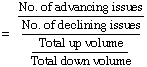 An advance/decline stock market indicator. A reading of less than 1.0 indicates