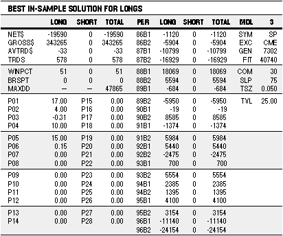 In this current effort, I focus on simple rules that may easily be manipulated and optimized without the aid of fancy technology. Recently, I developed a Standard & Poor's 500 trading system using this approach. I had two rules, each with a parameter or two, and I simply played with different values of the parameters until I found a set that traded the way I liked.FIGURE 1: Here are the performance summary and parameters. BUT FIRST, SOME INTERPRETATIONS