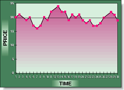 FIGURE 1: A NONTRENDING MARKET. Here's a simple close-only chart with a linear regression line plotted though the data. The price action is sideways, moving over the period of 30 observations. Relative to time, the market is not trending.