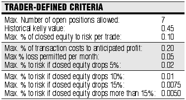 An individualized money management algorithm (using a spreadsheet program such as Microsoft Excel) will control the equity growth of any positive-expectancy system as a direct function of using correct position sizing. Risking too large a portion of trading capital per position will eventually cause even the most profitable trading system to fail.The second advantage to developing your own position-sizing strategy is to preserve trading capital during periods of extended drawdown or losing trades. This saves you the money to trade when things finally turn around. Unfortunately, many traders inadvertently lose their hard-earned trading capital as a result of improper position sizing. This becomes painfully obvious when they have risked too much capital over an extended series of losing trades.