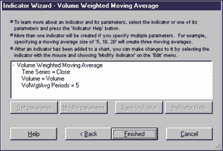 Div ( Sum ( Mult ( Close, Volume ), Period ), Sum ( Volume, Period ) )This function is available in a function file that can be downloaded from our website in the Solution Library section. It can then be imported into TradingSolutions using "Import functions..." from the File menu. A sample chart can be seen in Figure 7.