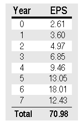 I enjoy your magazine; it's a great source of ideas and sheds new light on the markets. However, I experienced some difficulty with the EBP formula in "Screening For Misvalued Stocks" in the May 2001 issue. Using the authors' data on Nokia, I found that it takes 10.5 years to earn back the price. Apparently E(2.61)* 1.38^7.5=29.22. Am I doing something wrong?