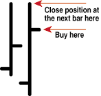 FIGURE 2: KEY REVERSAL SETUP. If the setup works, it is possible to buy on close and sell next bar at today's high....Continued in the December 2001 issue of Technical Analysis of STOCKS & COMMODITIES