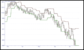 Figure 10 shows the weekly support/resistance as bands on the Dow Jones Industrial Average price action.