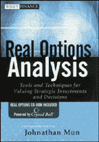 Real Options Analysis: Tools And Techniques For Valuing Strategic Investments And Decisions (386 pages, $69.95 hardcover plus CD, 2002, ISBN 047125696X), by Johnathan Mun, published by John Wiley & Sons.