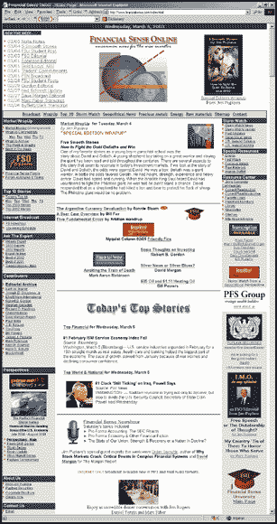 With an editorial archive, a market monitor with daily closing prices for major market averages and indexes, currencies, interest rate instruments, and commodity futures, a Week in Graphs section, and more, Financial Sense Online is easily one of the more complete financial commentary websites. The fact that all this information and insight is provided gratis makes Financial Sense Online as much a "must-bookmark" financial website as any other on the Internet. And in a time when more and more investors are searching about for direction in this market, Financial Sense Online is a bargain that can't be beat.