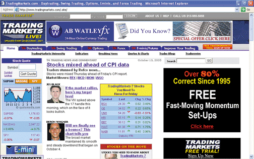 FIGURE 1: THE HOME PAGE OF TRADINGMARKETS.com