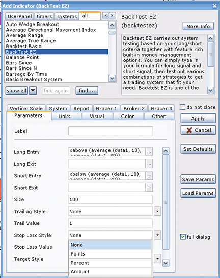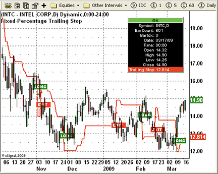 Figure 2: eSIGNAL, FIXED-PERCENTAGE TRAILING STOP