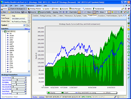 See the “transactions” tab in the workbook for a very simple simulation of Vervoort’s SVE_Stoch_IFT trading system using the rule set provided in the article. A sample chart is shown in Figure 14.