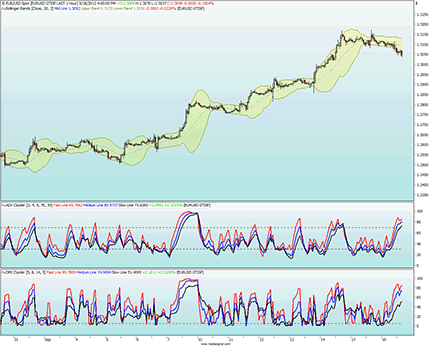 FIGURE 13: VT TRADER. Here is the TAC-DMI on a EUR/USD one-hour candlestick chart.