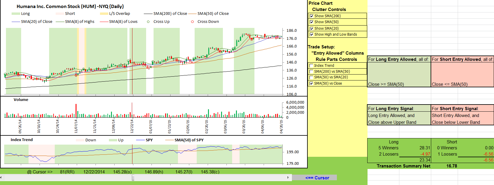 FIGURE 14: EXCEL, TRADE SETUP SCREENS. This shows Humana with all trade setup screens in place.