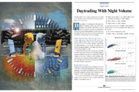 In “Daytrading With Night Volume” in this issue, author Domenico D’Errico presents a method for forecasting the volatility of an upcoming equity index futures day session based on the trading volume of the previous overnight session. He presents his statistical analysis showing that the day session volume is correlated to the night session volume and that the day session range is correlated to the day session volume.