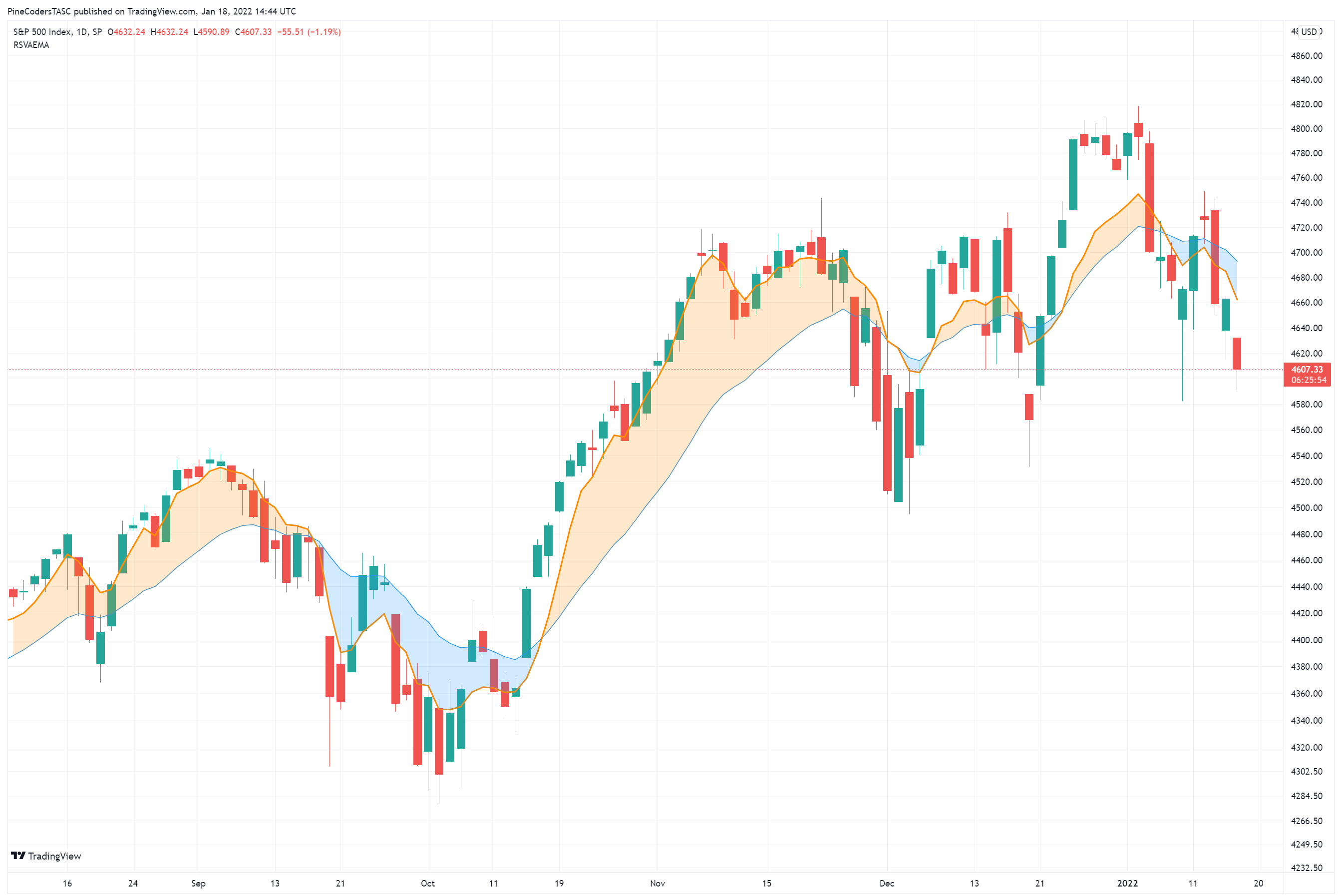 FIGURE 6: TRADINGVIEW. Shown here is the RS VolatAdj EMA on a chart of the S&P 500 index.