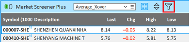 Since Market Screener Plus provides the same functionality as a watchlist window, you can also run built-in studies, formulas, and custom expressions (based on any of the values in the Market Screener columns) to further analyze and sort the results of your scans.