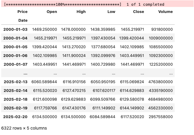 ohlcv = yf.download(symbol, start="2000-01-01", end="2025-02-21", group_by="Ticker")ohlcv = ohlcv[symbol] # un-comment for older versions of yf module
